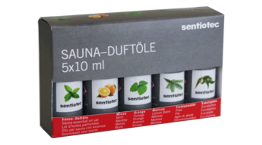 Sentiotec - Szauna illatok Szett 5x10ml - Menta,Narancs,Eukaliptusz, Fenyő, Citromfű
